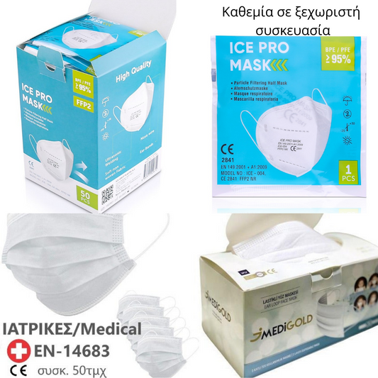 Μάσκες FFP2 Υψηλής Προστασίας Άσπρες EN149:2001+A1:2009 CE 2163 (Δώρο 1 κουτί ιατρικές μάσκες MediGold)