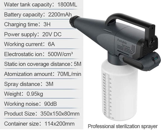 Επαναφορτιζόμενος Ηλεκτροστατικός Ψεκαστήρας Επιφανειών µε Αερόλυµα (Fogger)